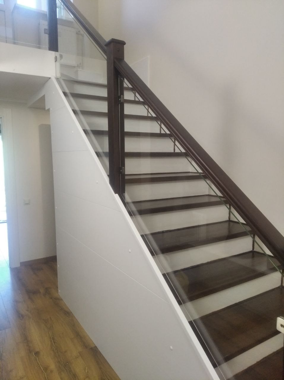 Ми використовуємо тільки сучасні матеріали для сходів: ясен, скло, бук.
